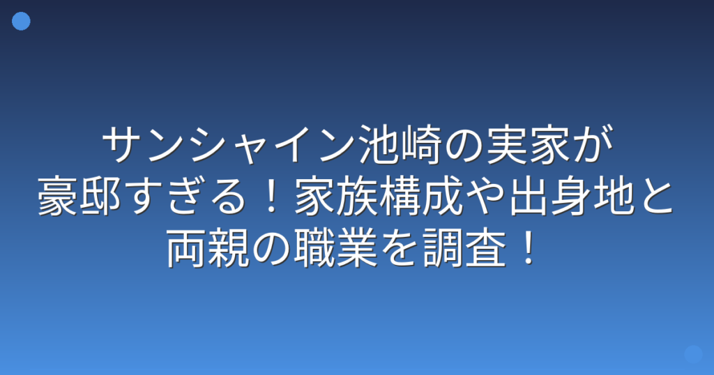 サンシャイン池崎の実家が豪邸すぎる!家族構成や出身地と両親の職業を調査!