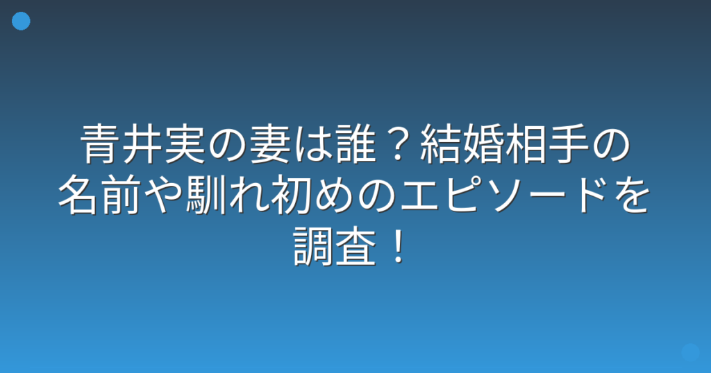 青井実の妻は誰?結婚相手の名前や馴れ初めのエピソードを調査!