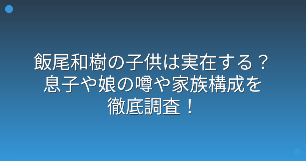 飯尾和樹の子供は実在する?息子や娘の噂や家族構成を徹底調査!