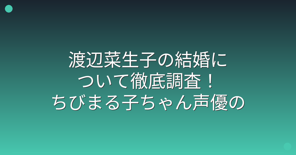 最近、人気声優として知られる渡辺菜生子さんの結婚について、ファンの間で関心が高まっているようです。