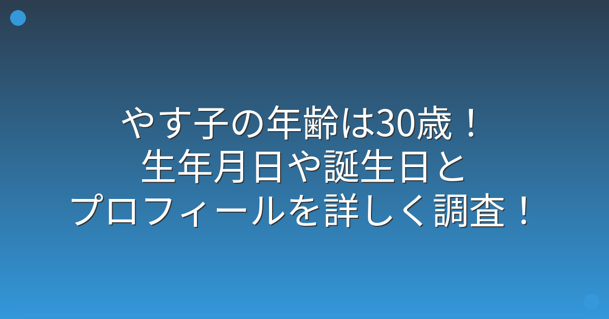 やす子さんの年齢は、2024年現在で30歳です。